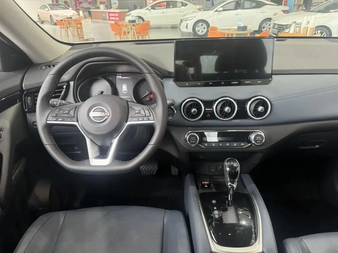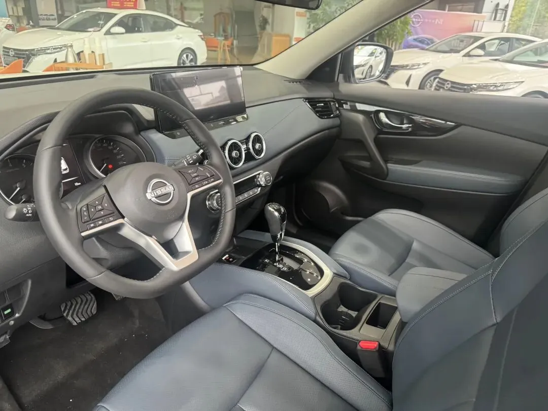 拉开车门进到车内,门板上半部分是软性材质包裹,下半部分还是硬塑料,符合成本控制。中控台敲了敲,用料比想象中扎实,日产这次在内饰质感上确实下了功夫,至少没有那种廉价的毛坯感。方向盘是真皮包裹,握感偏硬但防滑不错。中控屏尺寸中规中矩,系统流畅度比老款强太多,UI设计也跟上了时代,就是强光下反光有点厉害。座椅是真皮材质,加热功能很实用,冬天用车确实舒服。日产“大沙发”的名号不是白叫的,座椅的支撑性和包裹感都处理得很好,主驾给了电动调节,副驾还是手动,这个小细节略显小气。