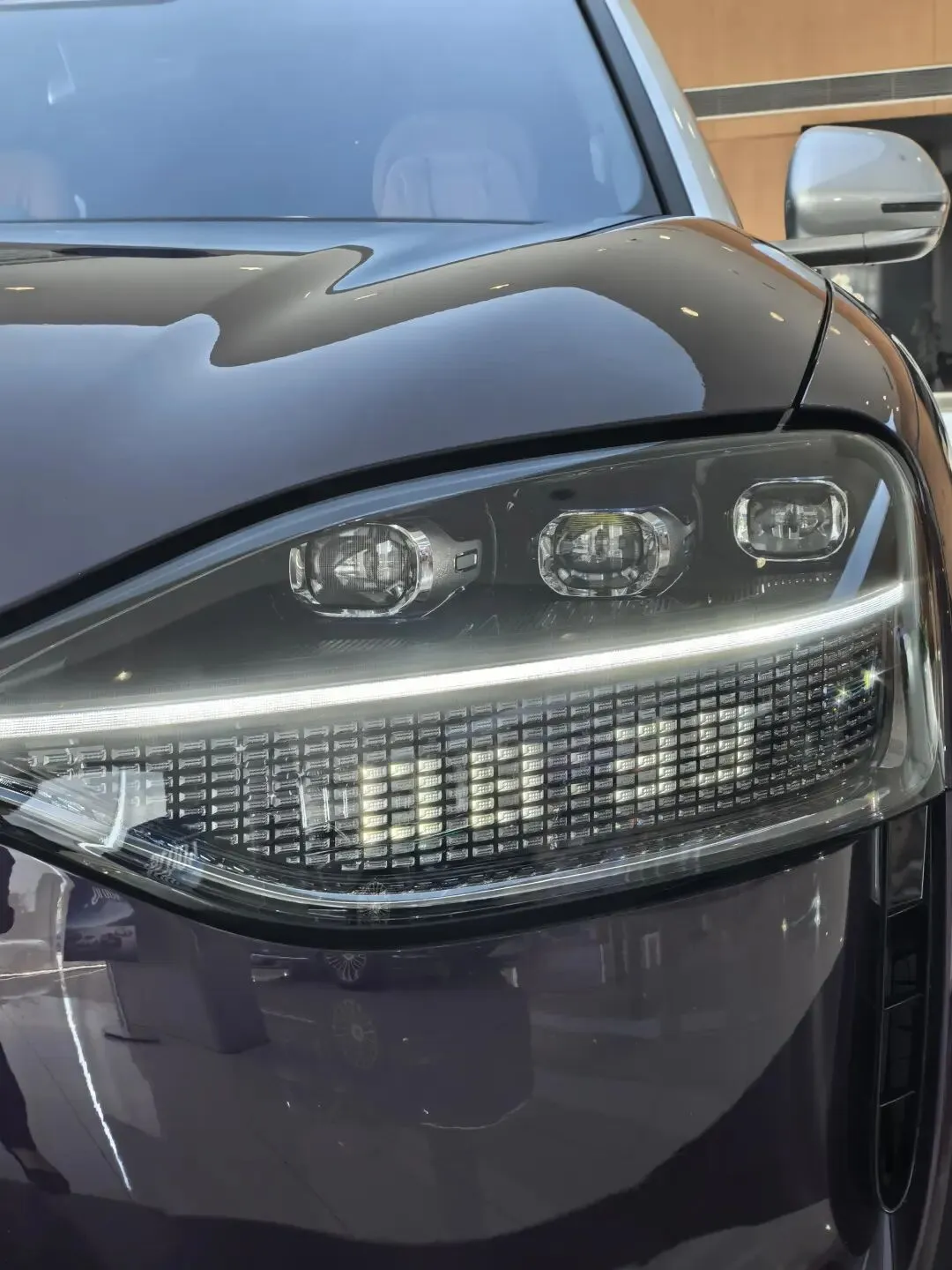 新车长宽高5230/1999/1800mm,轴距3110mm,保持大型旗舰SUV的气场。前脸采用全封闭式星环格栅,搭配超2600颗Mini LED的立体化贯穿式灯组,支持自定义灯光语言;车顶瞭望塔集成激光雷达,造型辨识度极高。新增曜金黑、金瑞红双色车身,低风阻刀锋轮毂进一步优化风阻系数;隐藏式门把手、流畅的车身线条,兼顾豪华感与空气动力学性能 。