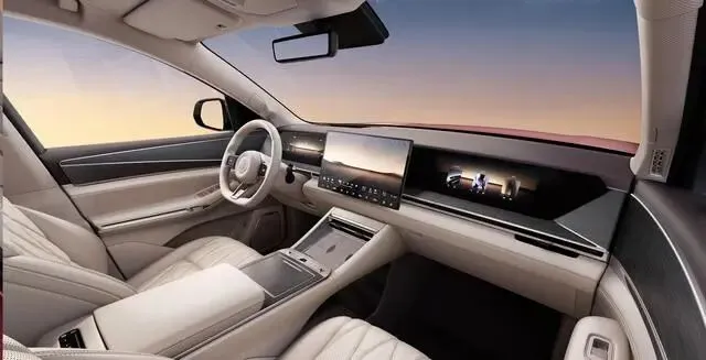 配备全液晶仪表屏、悬浮式中控大屏(约16英寸,支持自适应旋转)与副驾娱乐屏三块屏,全车搭载27扬声器的帝瓦雷7.1.4声道音响系统。