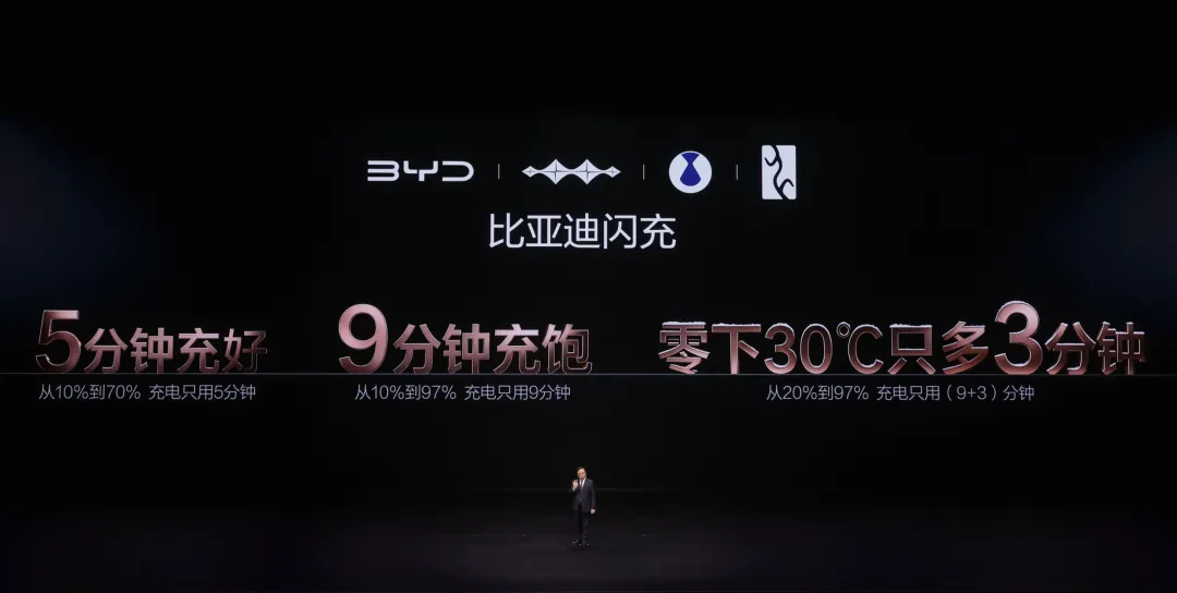 搭载第二代刀片电池和全域1000V高压架构,纯电版本CLTC续航最高达950km,为目前全球大型纯电SUV中最长续航车型。支持“兆瓦闪充”技术,充电5分钟可补充约400km续航,10%–97%电量仅需约9分钟,充电速度比加油还快,而且极寒环境下(-30℃)充电时间仅比常温多3分钟。