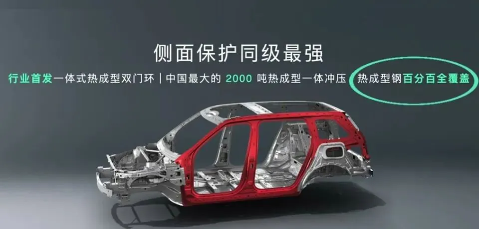 “行业首个整车侧面ABCD柱百分百热成型钢全覆盖。”