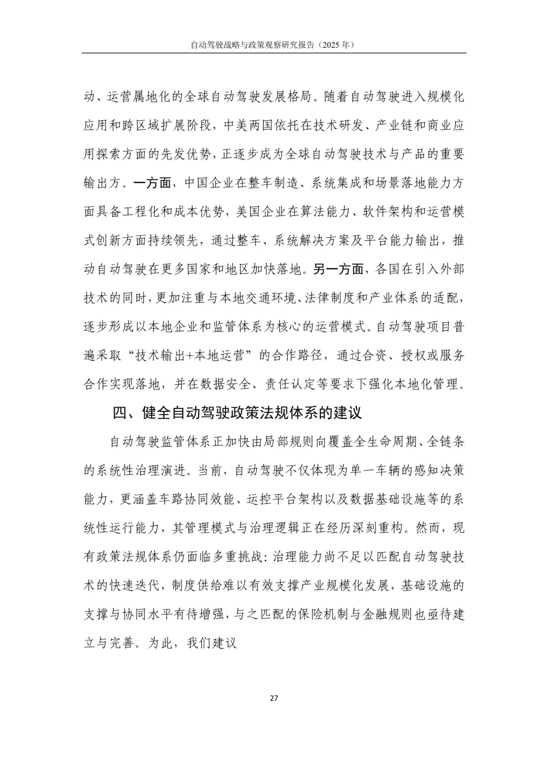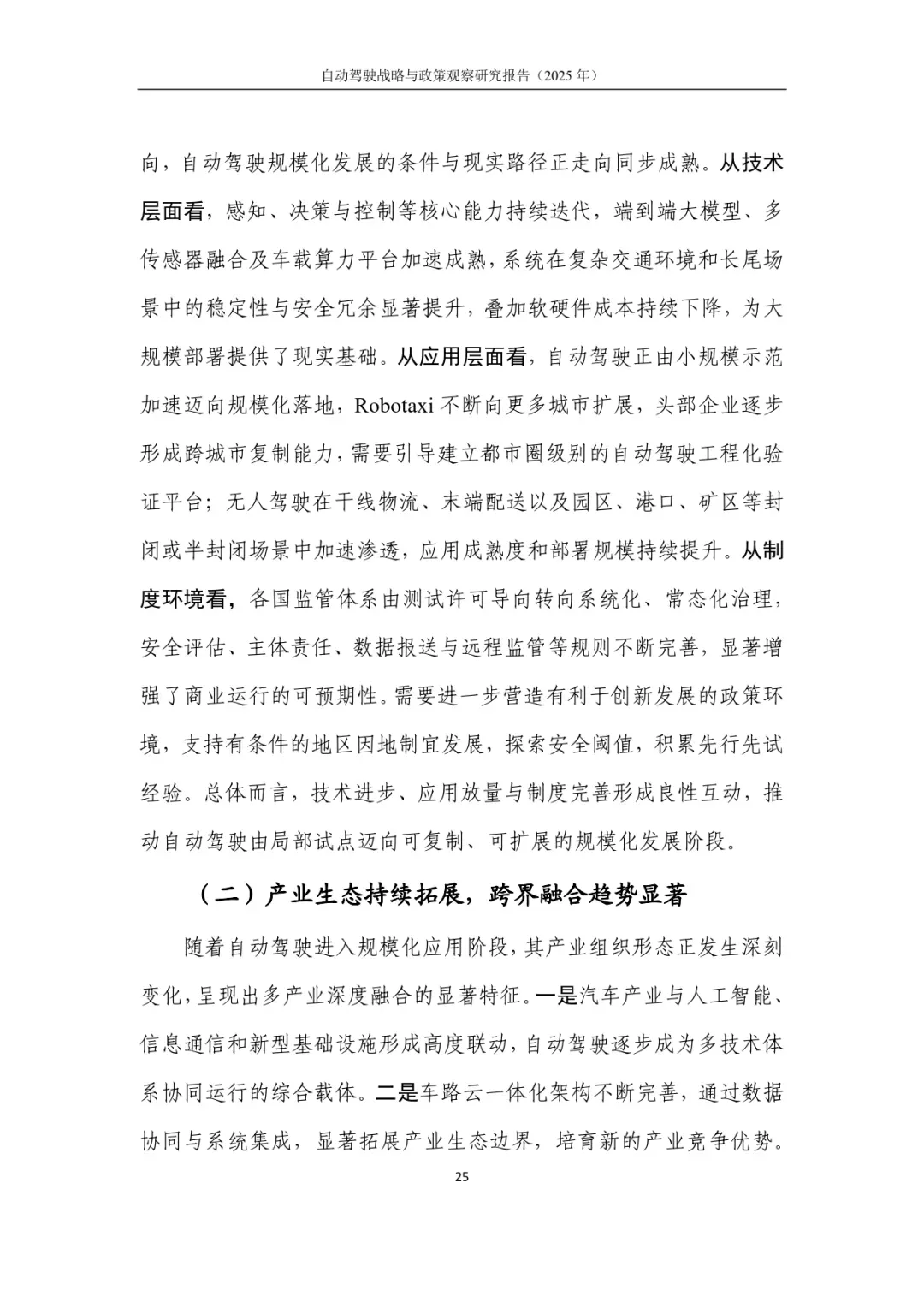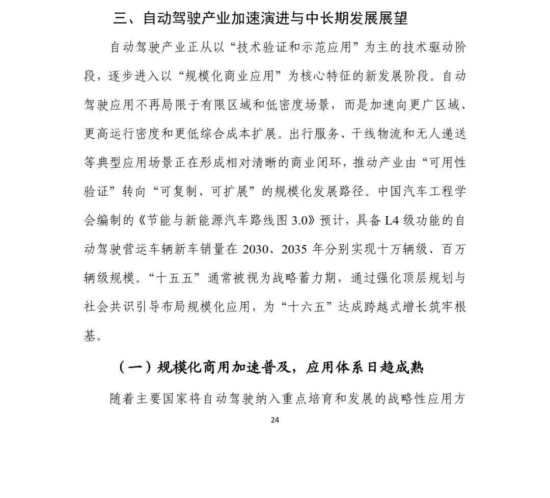 整份报告通过长期系统性观察,深度提炼自动驾驶产业发展规律与政策经验,为行业从示范应用走向广泛部署、实现技术与产业深度融合提供了清晰路径与稳定制度环境。