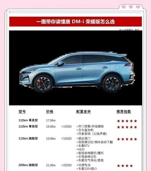 再聊聊核心配置,这可是大家最关心的部分。动力方面,大唐给了两个选择,纯电和插混。纯电版用的是双电机四驱,综合最大功率500千瓦,零百加速3.8秒。这个数据放以前,可能只有那些百万级的性能车才能做到,现在国产车也能给到这样的加速体验,确实挺让人惊喜的。插混版也不弱,用了比亚迪最新的DM 5.0超级混动系统,纯电续航200公里,综合续航能跑到1200公里。这意味着平时上下班用电,周末出远门用油,完全不用有里程焦虑,而且油耗应该也会很友好,对家庭用户来说很实用。