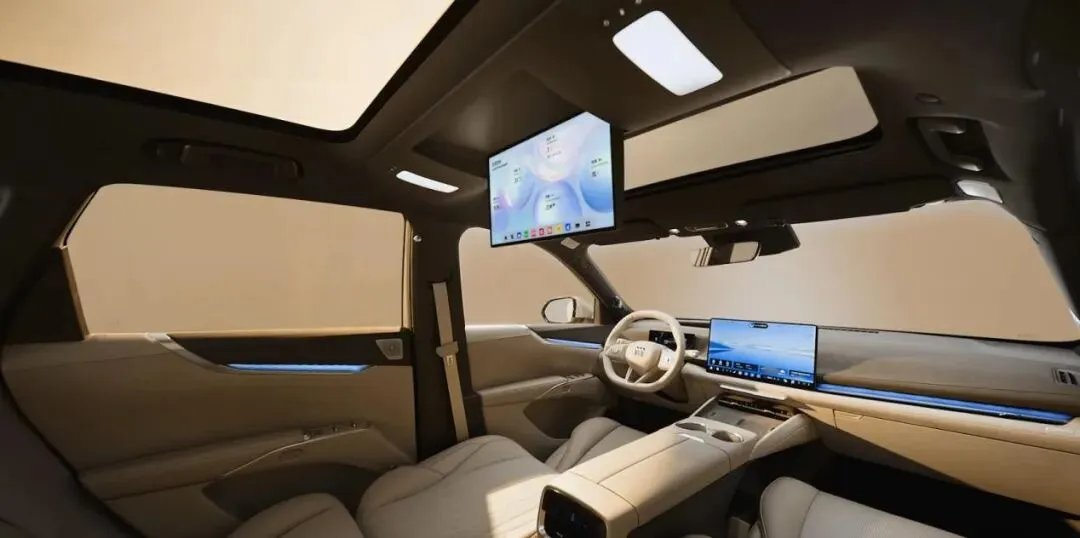 二排我让同事坐,他178,腿长,翘着二郎腿还剩一大截空隙。他说后排脚底下有块小凸起,踩着不硌,比唐DM-i那个硬塑料踏板舒服。冰箱在扶手箱里,温度能调到2℃,放了瓶冰啤酒,十分钟就结霜;50℃档试了下,热牛奶倒进去五分钟都没凉。旁边吸顶屏打开,放了个动画片,声音不大,但字幕清晰,同事娃趴在妈妈腿上看了十分钟没喊累。