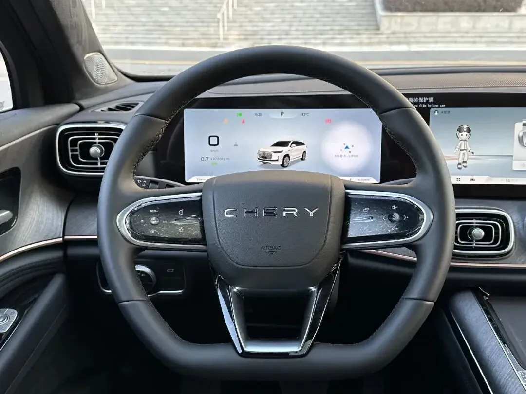 这台瑞虎 9 走的是大气豪华路线,前脸是大尺寸直瀑式进气格栅,搭配贯穿式 LED 日行灯,气场直接拉满,在小区里回头率超高。车身是亮黑色车漆,在阳光下有细腻的光泽,搭配多辐式大轮毂,侧面线条流畅,车尾是贯穿式尾灯,双边共两出的排气造型也很有运动感,整体看起来稳重又不失精致。车身尺寸