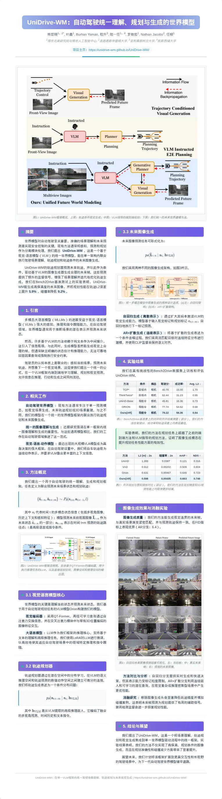 《UniDrive-WM: Unified Understanding, Planning and Generation World Model For Autonomous Driving》是博世北美研究院与博世人工智能中心的最新研究。