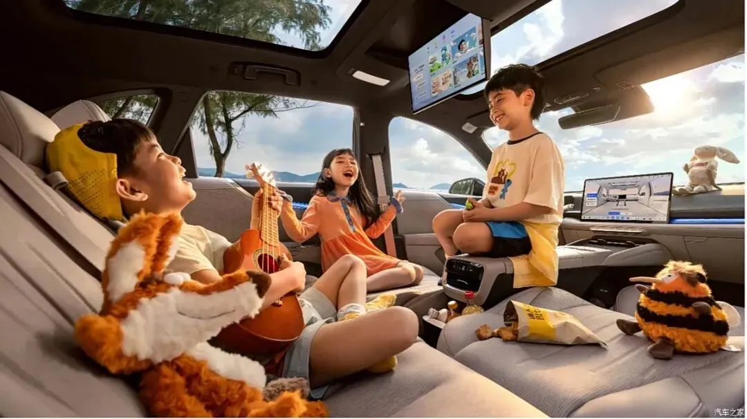 车内还藏了不少实用的小设计。二排有个挺稳当的多功能桌板,居然还专门设计了放笔的地方,对经常需要在车里处理事情的人来说很友好。椅背上有扩展接口能给设备充电,车里还配了个能调温的银离子冷暖箱,从2度到50度都能调,夏天放冷饮冬天热牛奶都不是问题。