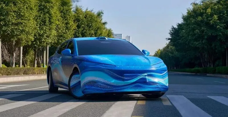 车身侧面更有意思。从预告片里看,溜背的线条特别流畅,从A柱一直滑到车尾,没有那种为了造型牺牲空间的生硬转折。轮毂应该是新设计的,辐条中间做了镂空处理,转起来估计视觉效果会很炸。车门把手没拍清楚,但按现在比亚迪的习惯,隐藏式的概率很大,摸上去应该很顺滑。最让我好奇的是后轮转向系统,一般这种配置都是豪华品牌才舍得给,比亚迪这次直接下放,看来是想让这辆中大型轿跑开起来更灵活,别像有些大车那样转弯费劲。