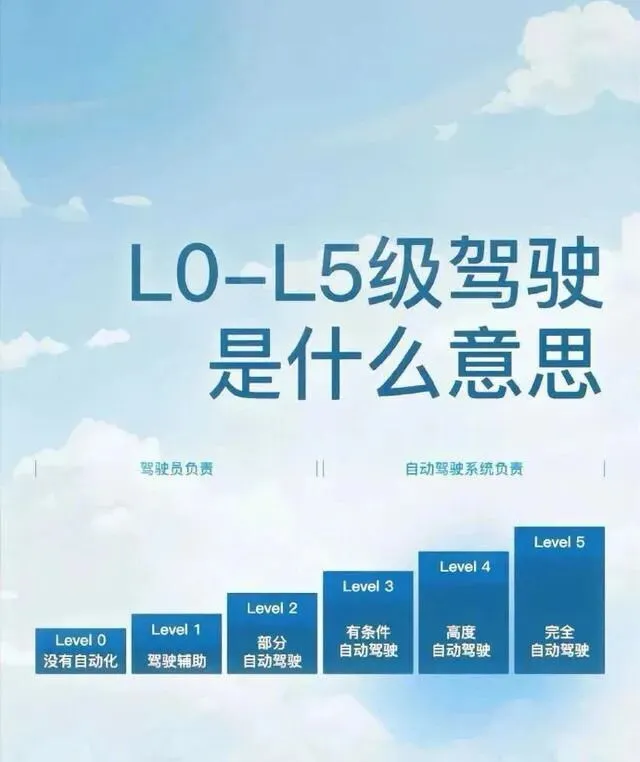 国际汽车工程师学会(SAE)将驾驶自动化分为了6个等级,从L0到L5,每一级都代表着系统接管驾驶任务的程度不同。