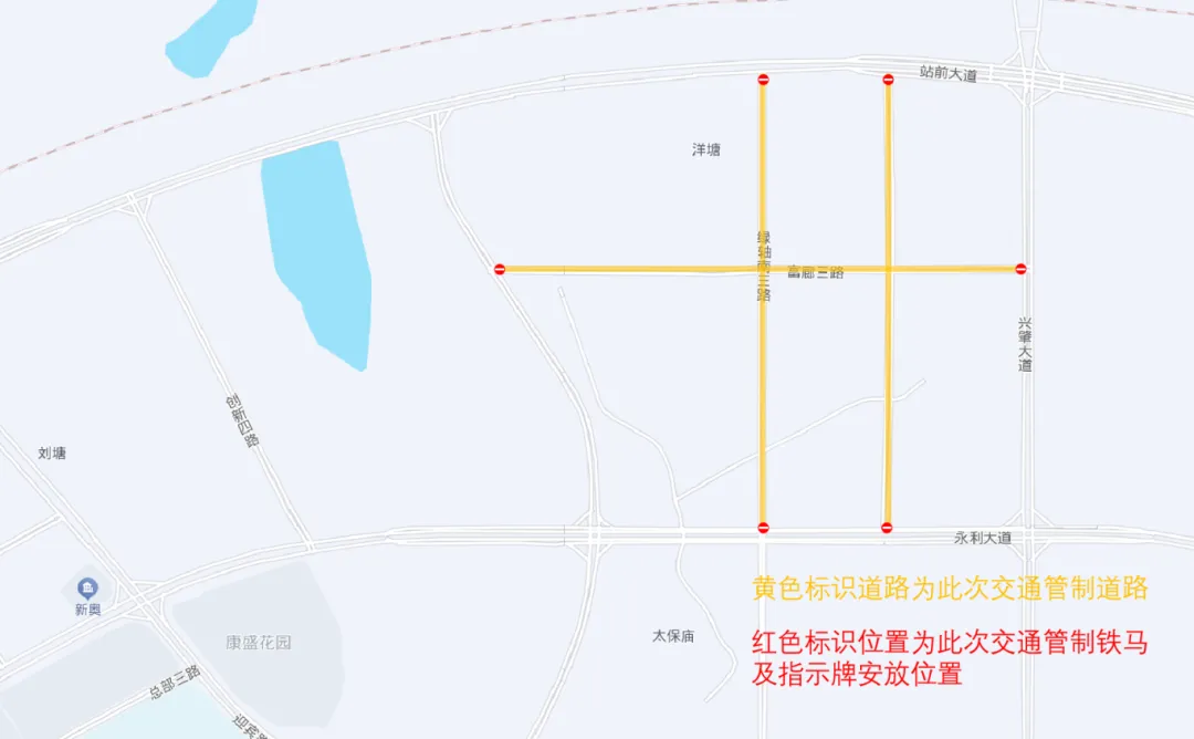 (三)绿轴四路(站前大道路口至永利大道路口)双方向实施全封闭交通管制。