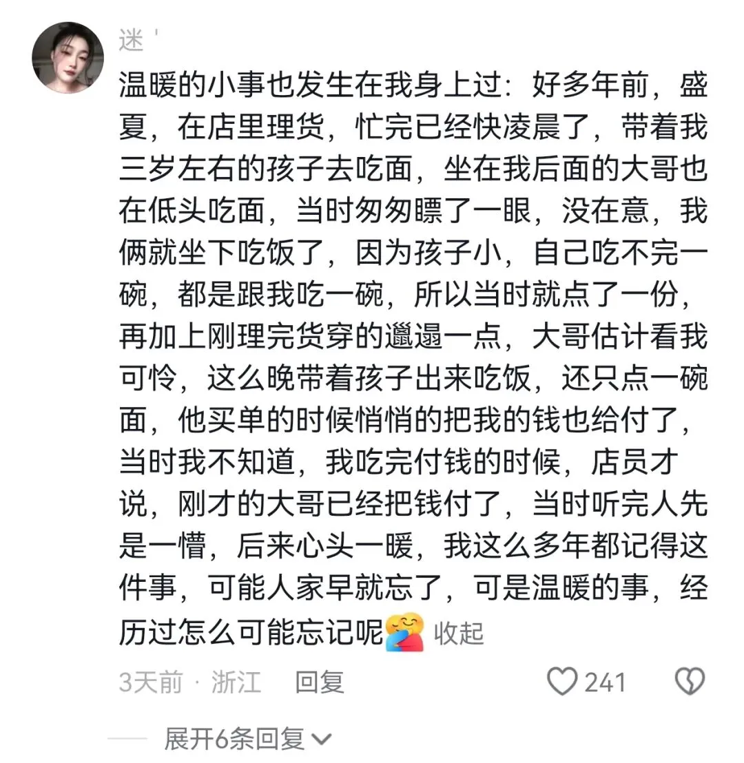 徒步阿青:梅雨季的一天,我在西湖边散步突遇暴雨,正不知所措时,一位骑着电瓶车的大哥特意绕回来,塞给我一把备用伞,只说了一句”拿去用,别淋感冒了”就骑走了。我甚至没看清他的样子,但那把伞成了我今年最温暖的记忆。