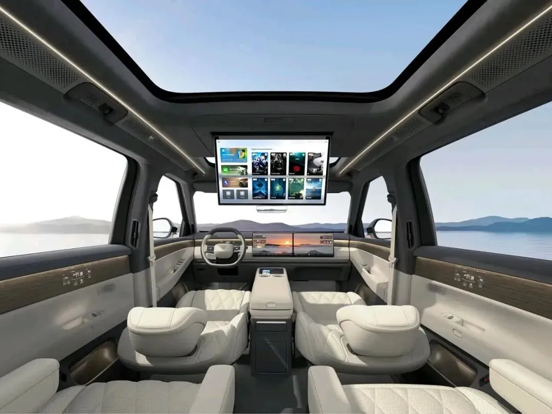 再来说说外观,毕竟是大型SUV,颜值太重要了,不然真的撑不起这个尺寸。说实话,我对大众之前的一些ID.车型外观,感觉一般般,不算惊艳,但这款ID.ERA 9X,真的长在了我的审美上!整体是简约大气的风格,但又不会显得呆板,细节处做得很精致,很符合咱们国人对“大而不笨”的审美要求。车头是家族式设计,一眼就能认出是大众,但贯穿式+分体式的大灯,又增加了不少科技感,晚上点亮之后,辨识度直接拉满。车身侧面的悬浮式车顶,搭配大尺寸轮毂,看起来特别有气场,而且线条很流畅,不会有那种笨重的感觉。车尾设计得很饱满,贯穿式尾灯和车头呼应,整体看起来特别协调。哦对了,新车还出了“大漠金”和“仙踪绿”两个颜色,我个人更爱仙踪绿,低调又有质感,开出去绝对不撞款。 内饰方面,我真的要夸一夸,完全打破了我对大众内饰的固有印象!现在很多新能源车型都走极简风,ID.ERA 9X也不例外,但它的极简,是那种有质感的极简,不是偷工减料的简单。车内到处都是皮革和软性材质包裹,摸起来软软糯糯的,档次感直接拉满。最让我惊喜的是它的Smart Surface魔术屏技术,说实话,一开始我还没看懂,后来查了一下才知道,屏幕关闭的时候,能和内饰完美融合,根本看不出哪里是屏幕,这种设计真的太高级了!点亮之后,画面也很清晰,没有多余的纹理干扰。而且二排门板上的魔术屏,还能调温度、调座椅,甚至能看补盲影像,防止开门撞到人,这个设计真的太贴心了,细节拉满。配置方面也很良心,中控大屏、副驾娱乐屏、后座吸顶屏全都有,还有自动分区空调、电动座椅这些,不管是司机还是乘客,都能坐得舒舒服服。