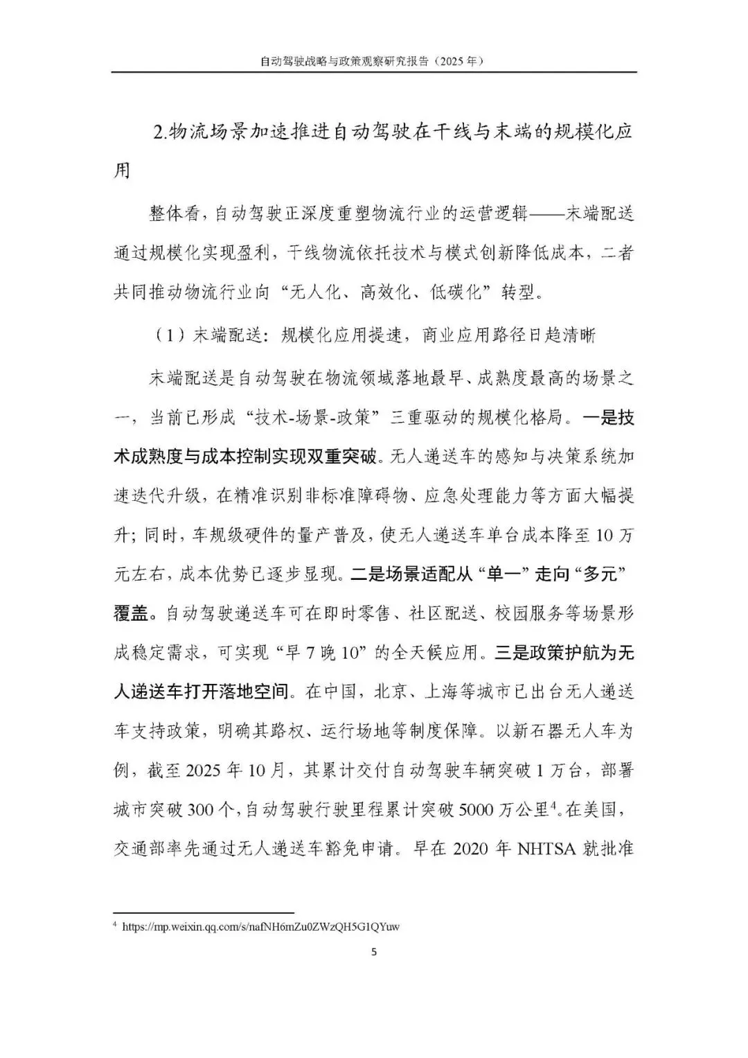 在场景应用领域,自动驾驶在出行服务、智慧物流及封闭场地作业等场景中实现规模化部署,落地速度与覆盖广度均实现跨越式增长,形成多元化商业落地生态。