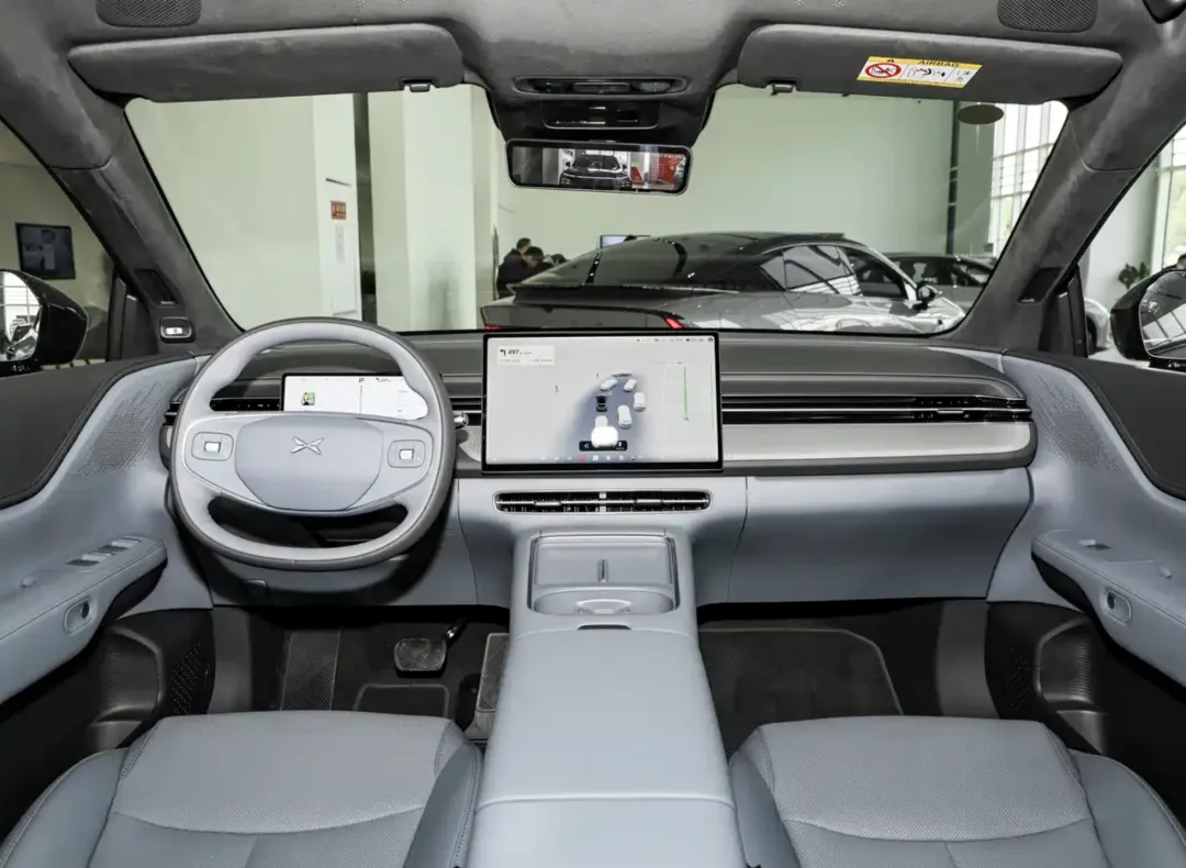 进入车内,小鹏G6增程版车顶采用了超大尺寸的全景天幕,配合着四周的侧窗、前风挡玻璃和尾窗,带来了更加敞亮的乘坐空间。车内采用了上深下浅的配色方案,大面积深棕色软心材质和米白色皮革材质的交替铺陈,中间还加入了黑色饰板和银色金属元素的点缀,不仅层次感丰富,还带来了更加高级的质感。环抱式的中控台配备了12.3英寸的全液晶仪表盘、15.6英寸的巨大的中控竖屏,搭载了最新的车机系统,支持语音识别控制、车联网、OTA在线升级、车辆控制、360度全影影像、导航、行车记录仪、远程诊断及维护等功能,分辨率为1920*1080,显示清晰细腻。此外,车辆还将配备ENC+RNC主动降噪功能。