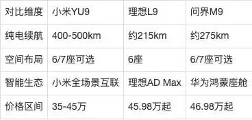 如果用户本身是小米生态用户,看重长纯电续航和性价比,小米YU9会是更适配的选择;若更在意智驾成熟度,理想和问界的现有车型也各有优势。