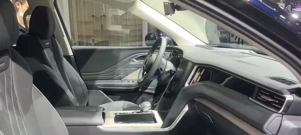 里面大面积都会采用这个软质材质包裹,左右座椅电动调节,通风加热功能都会有配备,中控显示屏尺寸应该是13.6英寸。