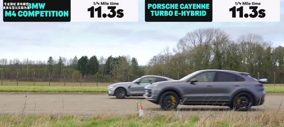 宝马M4险胜卡宴Turbo,双方的成绩均为11.3秒