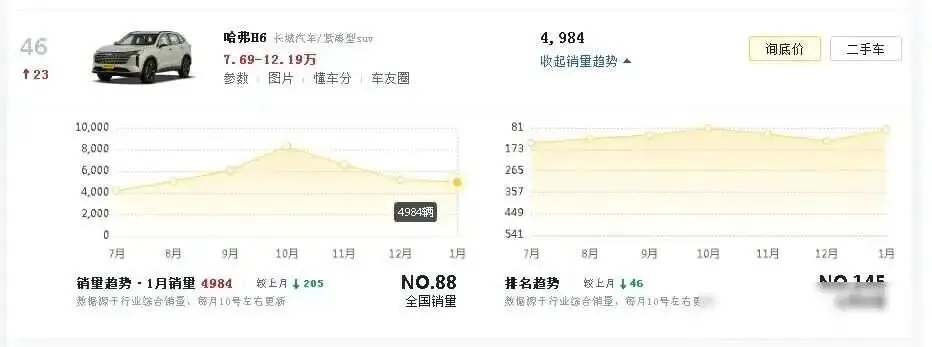 长城汽车最近不太顺,花了大力气推的新车哈弗H6L,上市几个月了,市场没啥动静,我上周去4S店转了转,销售顾问吞吞吐吐说不清销量,最后只说和H6合并统计了,可翻看最近三个月哈弗H6的总销量,不但没上去,反而一路往下掉。