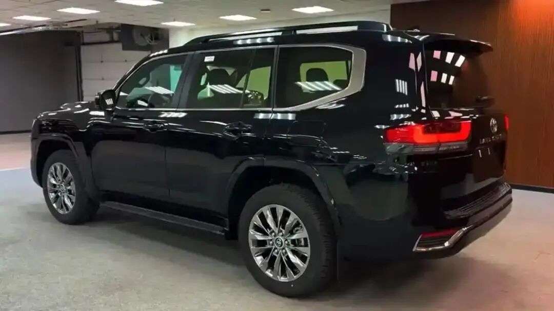 外观方面,全新丰田兰德酷路泽延续了品牌经典的硬派设计语言,大尺寸矩形进气格栅搭配犀利的 LED 灯组,前脸气场十足,侧面平直的线条配合 4950mm 的车长,勾勒出硬朗魁梧的车身轮廓,尾部造型方正饱满,外挂式备胎预留位进一步强化了硬派属性,整体设计霸气沉稳,越野气场拉满。唯一的小遗憾是车身尺寸偏大,城市日常代步的停车便利性略有不足。