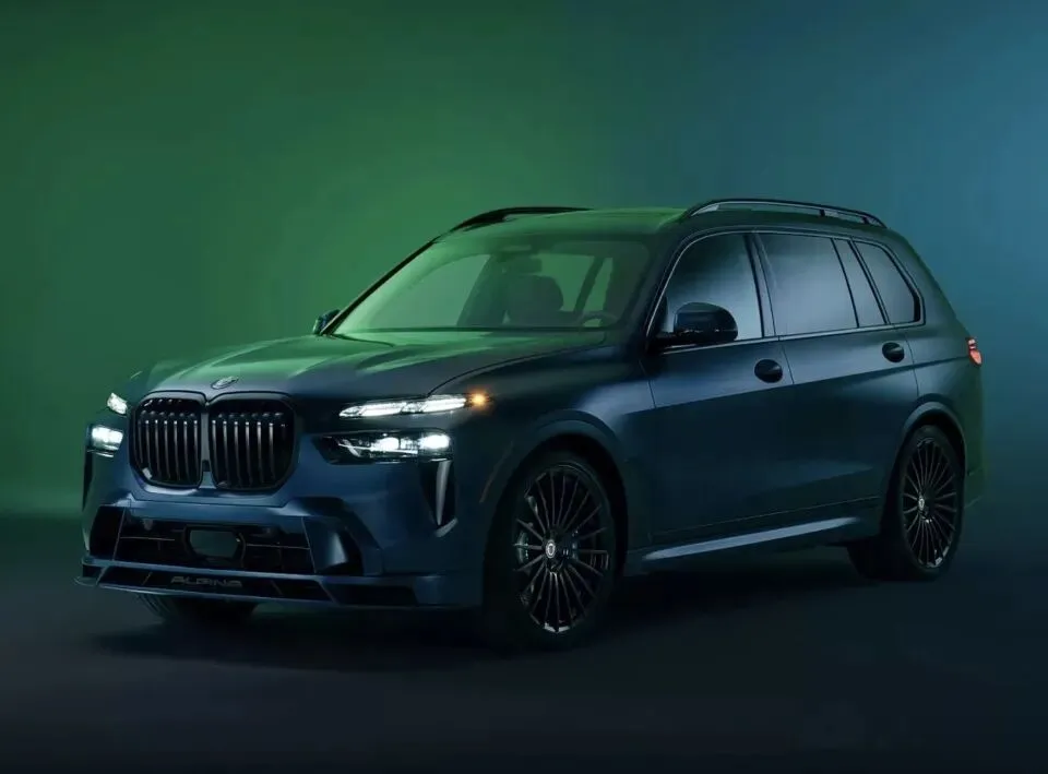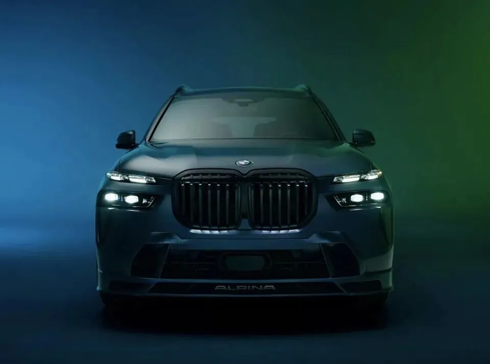外观方面,新车基于宝马X7打造,延续ALPINA家族经典设计语言,核心亮点是配备专属曜夜套装,全车多处采用亮黑色涂装,质感与运动感兼具。前脸配备宝马标志性双肾格栅,搭配ALPINA专属前扰流板,均采用亮黑色处理,与两侧水晶大灯组形成鲜明对比,点亮后辨识度拉满;前包围加入镀铬饰条点缀,兼顾运动气场与豪华质感,车头ALPINA标识同样采用亮黑色涂装,强化专属身份。