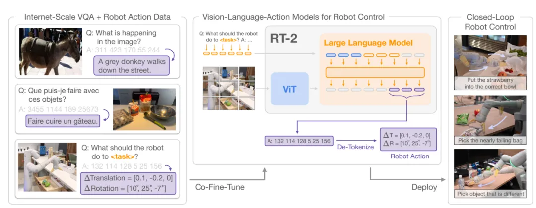 图片来源:论文《RT-2: Vision-Language-Action Models Transfer Web Knowledge to Robotic Control》