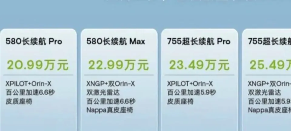 小鹏G6不同配置价格信息。
