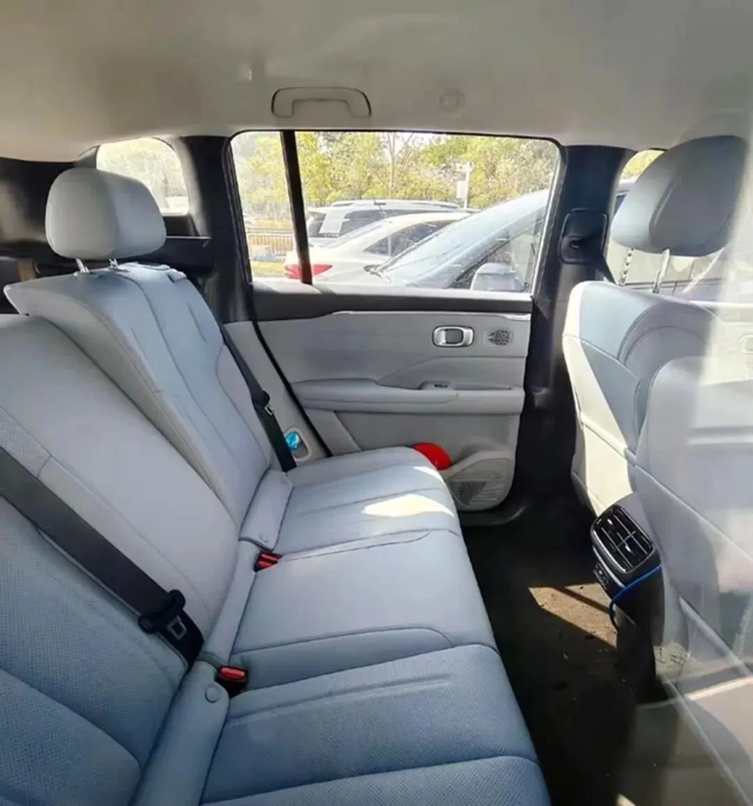 座椅全系带零重力副驾,不是高配才有。我躺了两分钟,腿抬高,腰托自动顶上来,脖子也有支撑。销售说按摩是5档可调,不是震动马达那种“嗡嗡响”,是真的揉捏感。后排有小桌板,卡在座椅背后,拉开能承重3kg,放平板、吃盒饭都行。