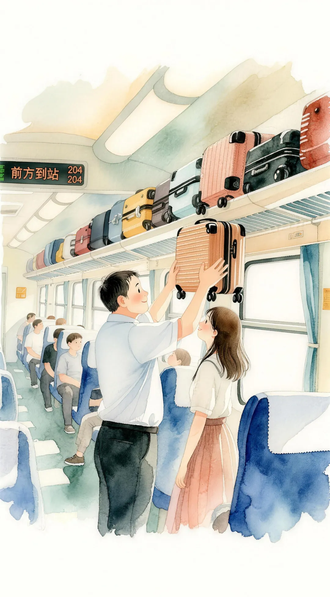 今年有一回带着20寸的行李箱坐高铁,把行李箱放到头上的行李架上时,有点抬不动,当时同排座位的叔叔直接伸手帮我放了上去,等我下站时也是主动把箱子拿下来送到我手上,真的很感谢。