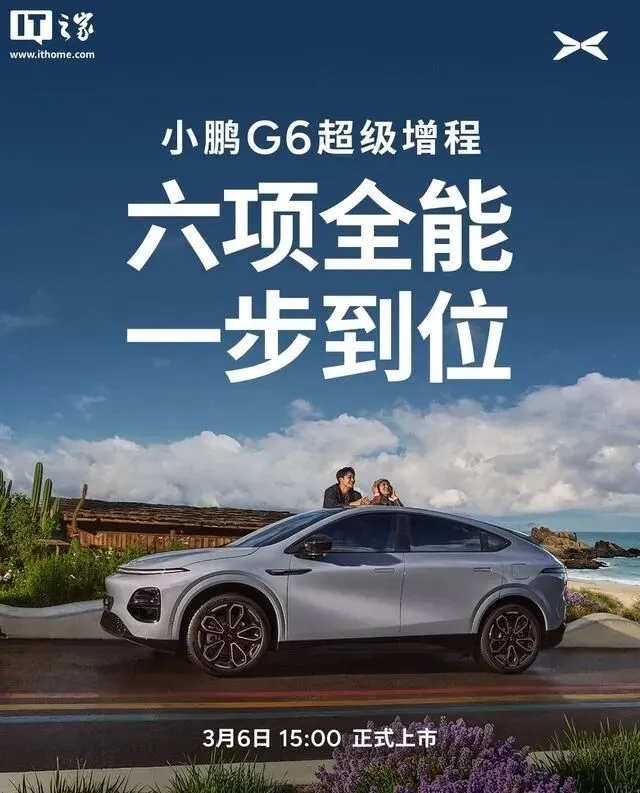 最近刷汽车圈的消息,发现小鹏又有新动作了。他们刚官宣,那款传说中的G6超级增程轿跑SUV,定在3月6日下午3点正式上市。宣传语挺有意思,叫“六项全能 一步到位”,听着就让人好奇,这车到底有啥本事,敢这么打包票?