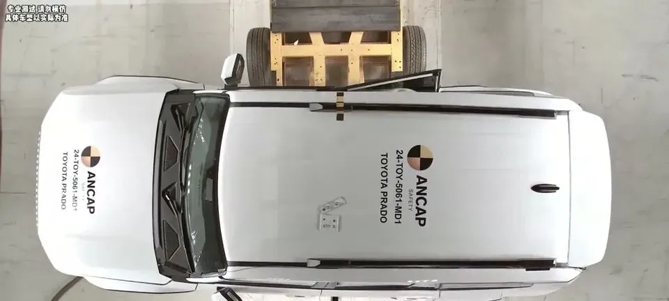 普拉多在29km/h侧面撞柱时,车顶横梁发生变形,气囊全部弹出,但立柱还是侵占了车内空间,驾驶员受到了一定挤压。