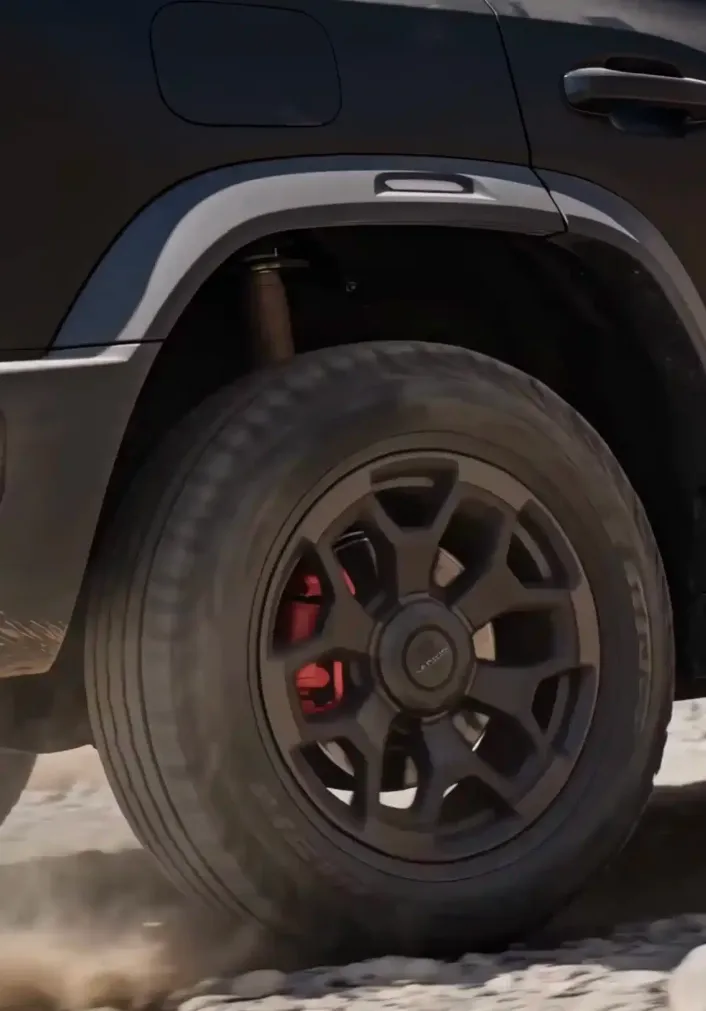 一台硬派取向的车,偏偏要在轮毂里藏一抹性能红,这种反差感挺有意思的。