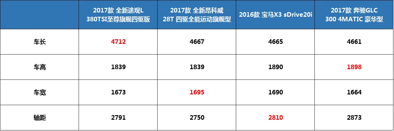 从前期公布的配置上看,途观L的车身尺寸并不像很多车型打擦边球,经过几款中级SUV主流车型的横向对比后可发现,途观L的尺寸与它们相近,俨然已经坐实中级SUV的行列。