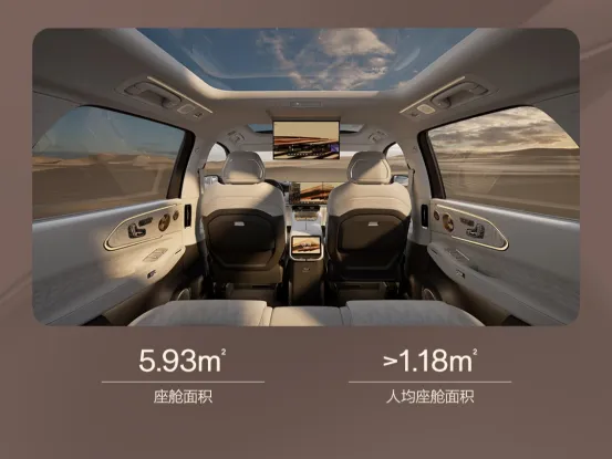 首先是同级优秀的空间表现,极氪8X本身就是一辆车长5.1米、轴距接近3.1米的大车,在同级中属于很大的存在,这也让它拥有5.93平方米的座舱面积,这一数据与部分大六座SUV已十分接近,例如腾势N8L的座舱面积为6.1平方米,领克900的座舱面积为6.16平方米。而且五座版本的极氪8X人均座舱面积超过了1.18㎡,这甚至超越了自家大哥车型极氪9X!