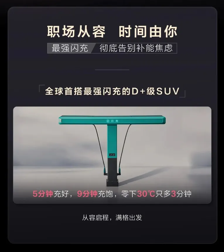 大唐是全球首搭最强闪充的 D + 级 SUV,彻底告别补能焦虑: