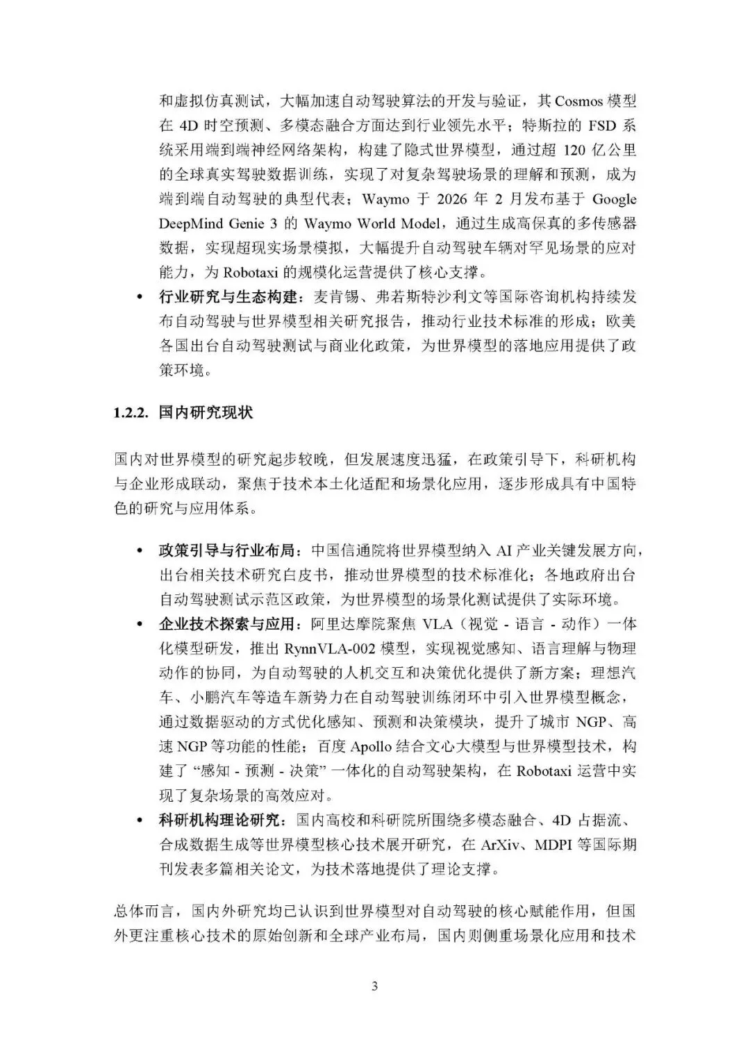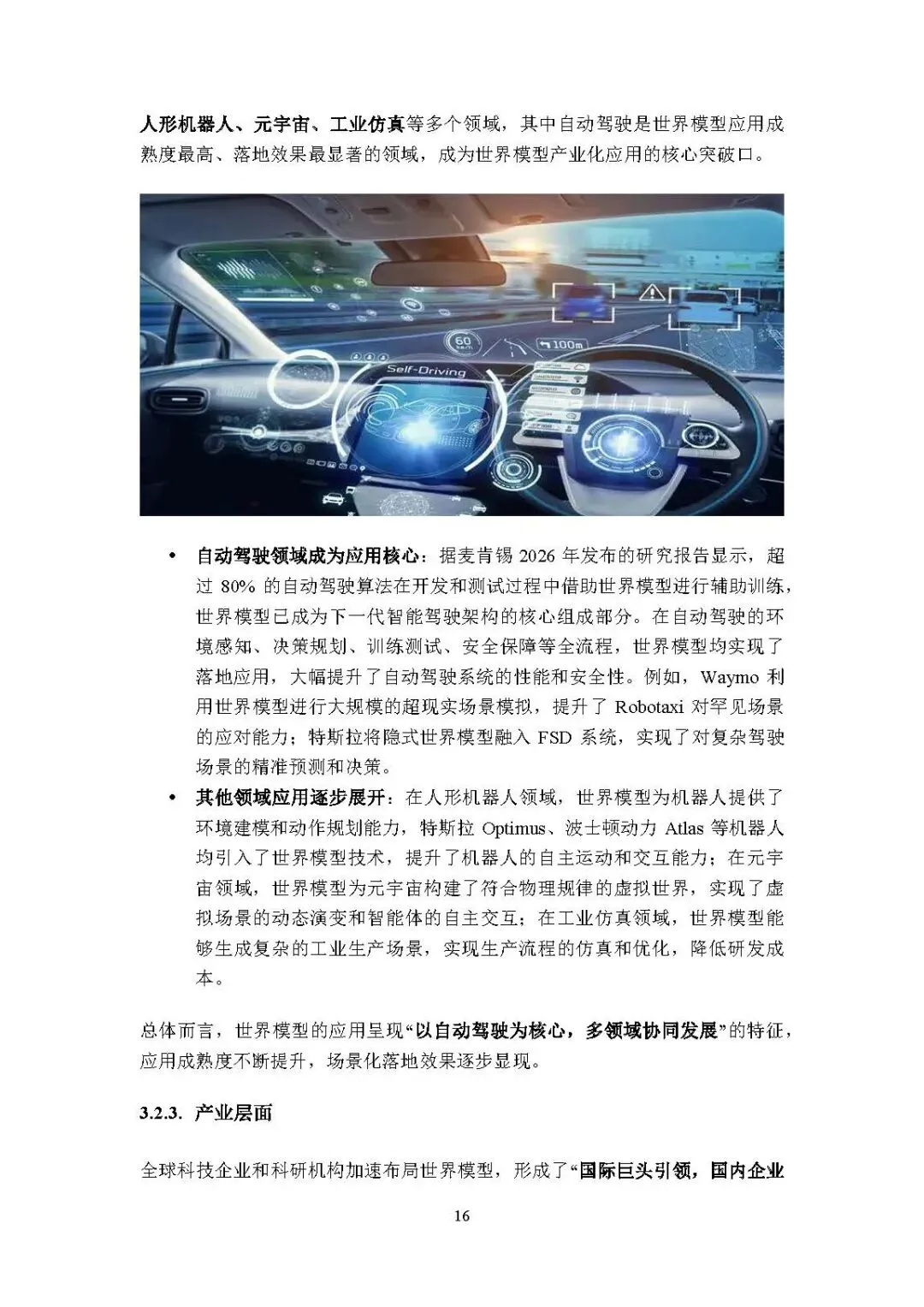 这篇研究报告聚焦世界模型在自动驾驶领域的应用,系统梳理了世界模型的发展脉络、核心技术,深入分析其与自动驾驶的适配性、应用场景、优势挑战,并从短中长期展望应用前景,提出发展建议。