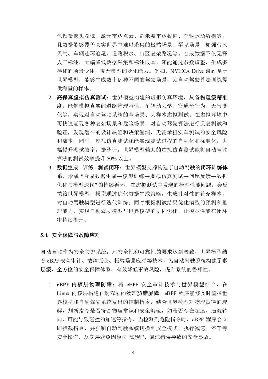 世界模型已深度渗透自动驾驶全流程,包括:环境感知与建模(4D 动态重构、多模态融合、异常场景识别);路径规划与决策优化(动态路径规划、反事实推理决策、类人化行为交互);训练与测试优化(合成数据生成、高保真虚拟仿真、构建训练闭环);安全保障与故障应对(eBPF 内核层防错、传感器故障冗余、极端场景应急处理)。英伟达、特斯拉、Waymo 等国外企业,及阿里达摩院、理想、小鹏等国内企业的实践案例,充分验证了其应用价值。