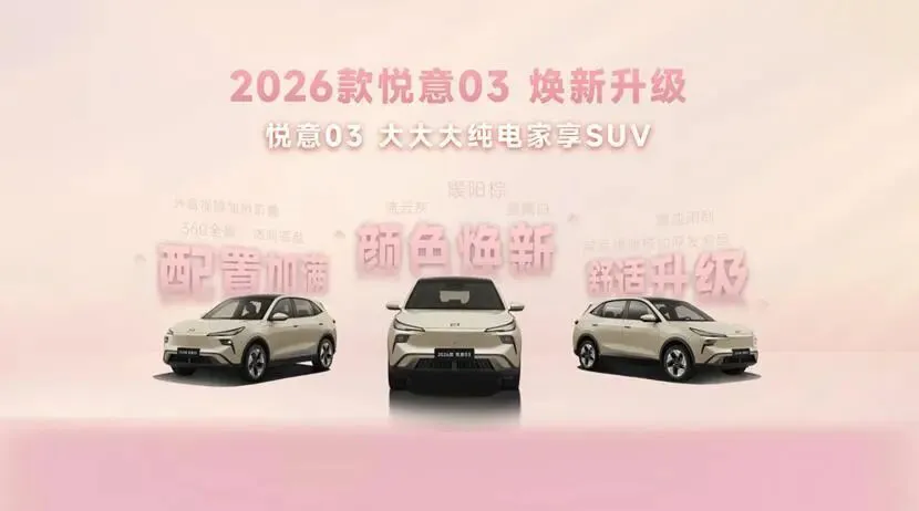 “大空间、大续航、大厂造”。事实上,悦意03的升级,本质上是将有限的研发成本,从那些用户感知不强的地方,转移到了高频使用的舒适性与便利性配置上。而这也标志着10万级纯电SUV市场正在告别“参数内卷”,进入“场景红利”时代。