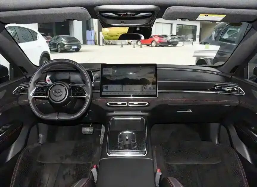 内饰与配置方面,全新马自达 EZ-6 的内饰走的是简约科技风,中控台大面积采用软性材质包裹,搭配缝线工艺点缀,质感十足。标配 14.6 英寸中控屏,搭载了马自达最新的车机系统,操作流畅,语音识别准确率高,全系标配 AR-HUD 抬头显示,这在 10 万级车型里非常少见,标配 6 安全气囊、定速巡航、倒车影像,只是低配车型没有 L2 级辅助驾驶,智能配置不如同价位的新势力车型丰富。