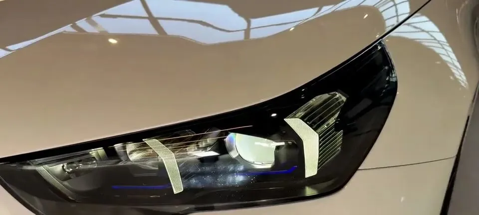 “展示2026款宝马M5轿车的车灯设计,LED灯组造型犀利。”