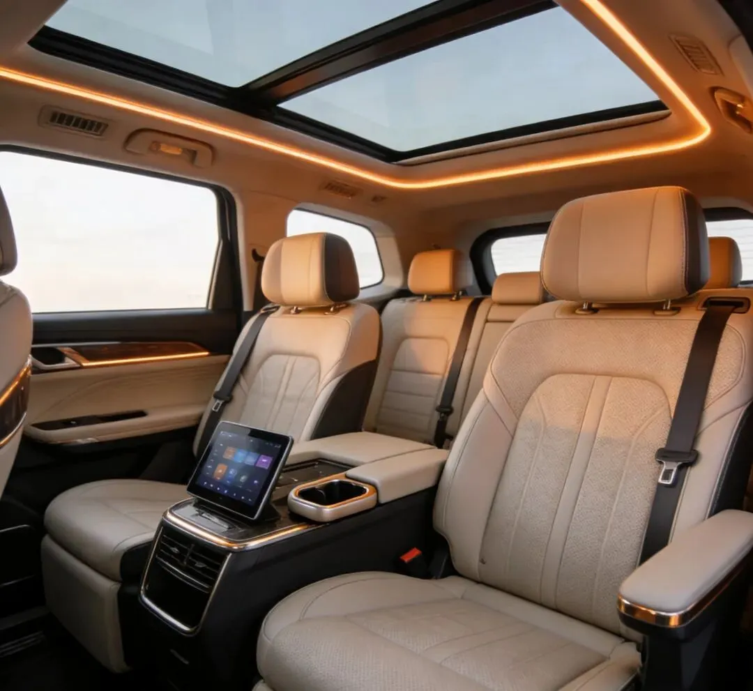 第三排我坐了,178cm身高,膝盖离前座还有一拳多,头顶没压到顶棚。通道宽175mm,我妈上车不用踩座椅,扶着门边就能进去。6座状态下后备箱还能装下婴儿车+两个登机箱+露营垫,全放倒之后是1600L,不是理论值,是C-NCAP侧面碰撞测试里,后围板没变形的前提下量出来的实测空间。