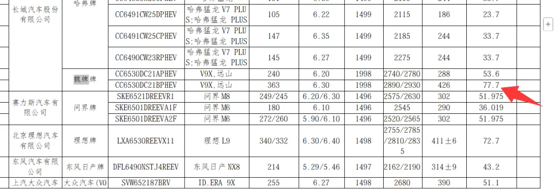 从申报信息看,魏牌V9X的大电池包版本的容量超过了70度,达到了77度,当然,价格层面,魏牌V9X可能要比零跑D19贵不少,预估魏牌V9X的价格应该在30万以上起售,毕竟魏牌蓝山的起售价都很接近30万了,指望魏牌低于30万,也很难低于29万了。总之,这台车不会便宜。