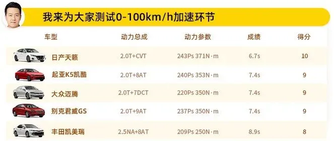 (由于五车并非统一搭载全新轮胎,轮胎不同的磨损程度会对加速成绩造成影响,仅供参考)