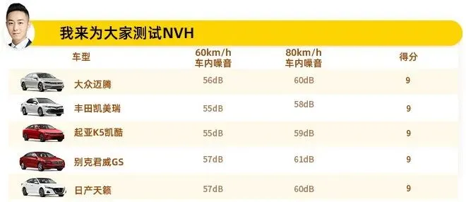 此环节我们使用专业分贝仪测量每台车在60km/h和80km/h的车内噪音,经过测试结果如下。