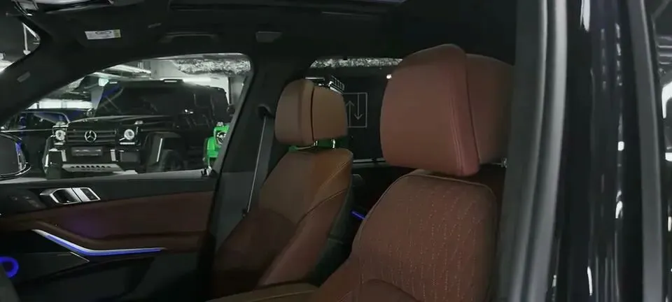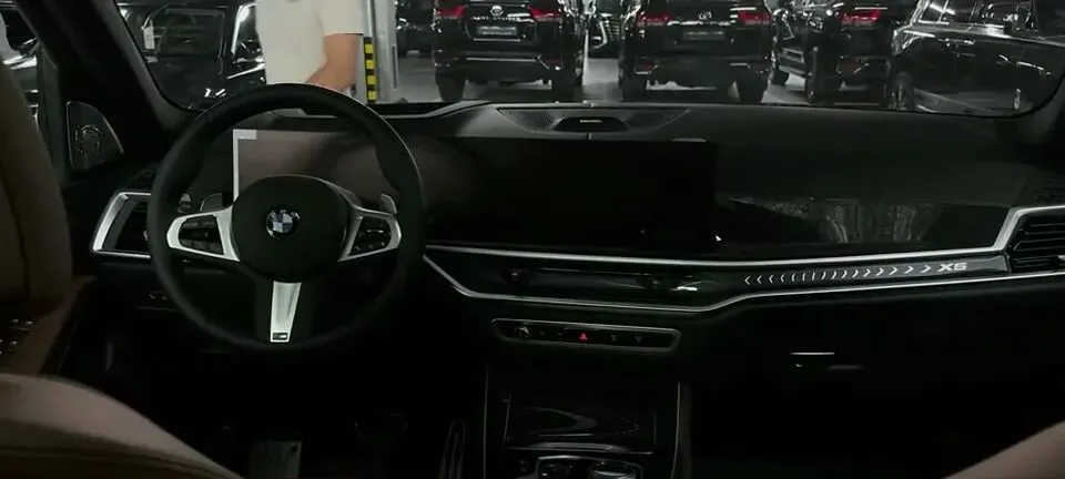 原句直引:“展示宝马X5的内饰,包括方向盘、仪表盘和中控屏幕。”