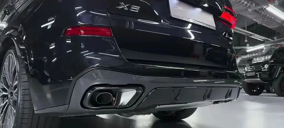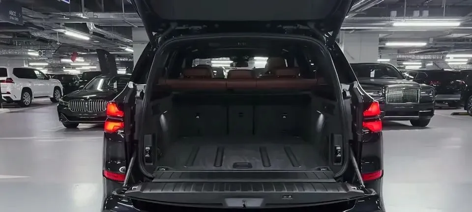 原句直引一:“展示宝马X5的后尾灯和尾部设计。”