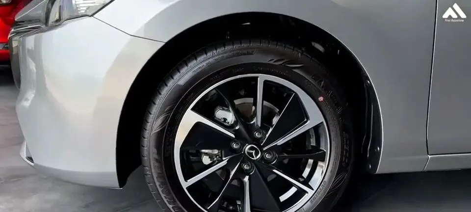“马自达2轮胎特写,轮毂造型时尚。”