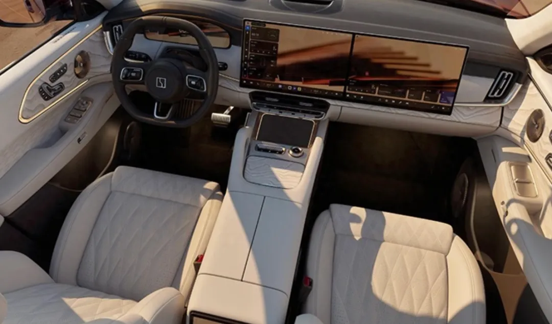 在功能布局上来看,前排最亮眼的是采用了中控副驾双联屏,座椅调节位于车门板上,且内侧车门开启为按键式。