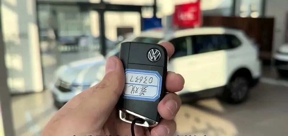 先把钥匙拿给你们看一眼,我现在手里这个,就是途观L的钥匙,典型大众味儿。