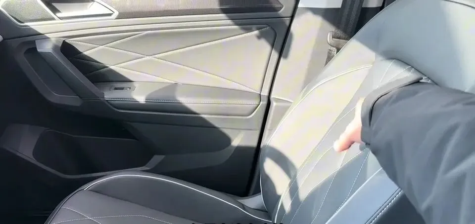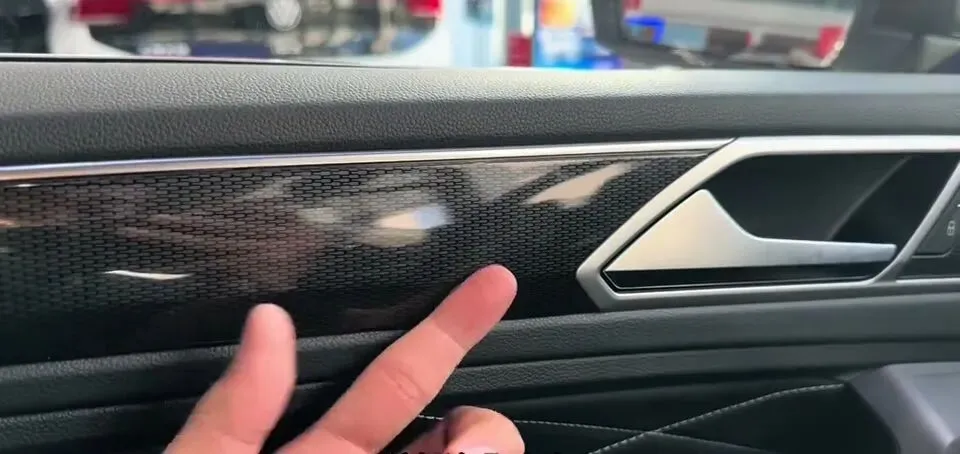 大家可以看到,这辆途观L车内,类似于碳纤维纹理的装饰件,这就增加这辆车内饰的一部分年轻感。