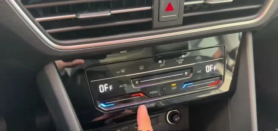 往下看空调控制区,我现在用指甲敲一下,大家听这个塑料感——